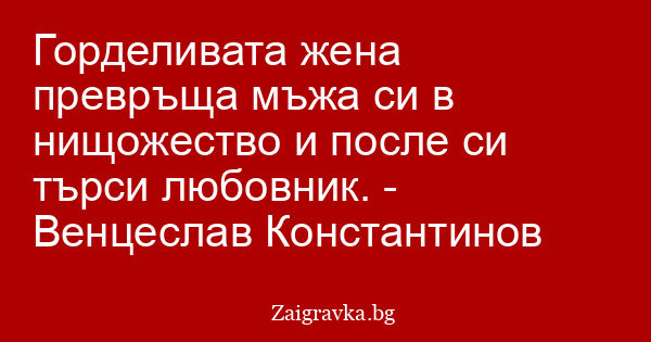 Горделивата жена превръща мъжа си в нищожество и после си търси любовник. - Венцеслав Константинов