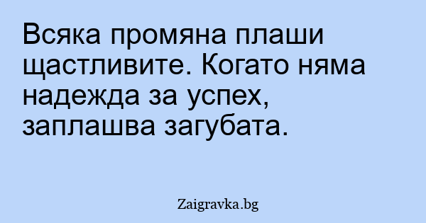 Всяка промяна плаши щастливите. Когато няма надежда за успех, заплашва загубата.