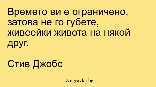 Времето ви е ограничено, затова не го губете, живеейки живота на някой друг.