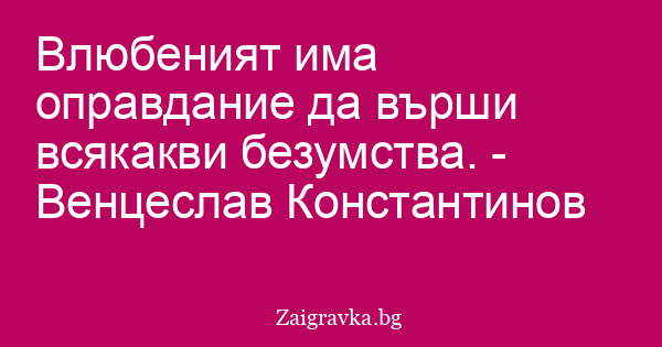 Влюбеният има оправдание да върши всякакви безумства. - Венцеслав Константинов