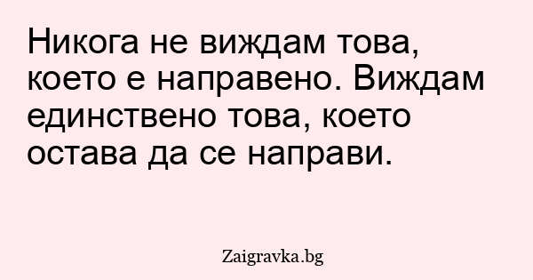 Никога не виждам това, което е направено. Виждам единствено това, което остава да се направи.