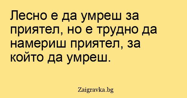 Лесно е да умреш за приятел, но е трудно да намериш приятел, за който да умреш.