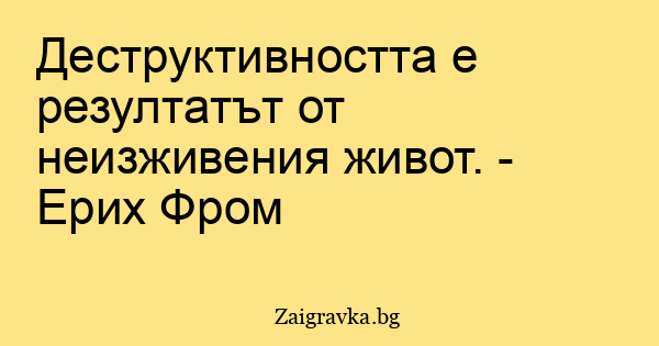 Деструктивността е резултатът от неизживения живот. - Ерих Фром