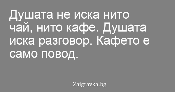 Душата не иска нито чай, нито кафе. Душата иска разговор. Кафето е само повод.