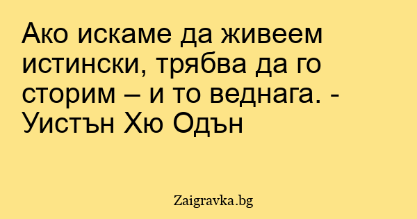 Ако искаме да живеем истински, трябва да го сторим – и то веднага. - Уистън Хю Одън