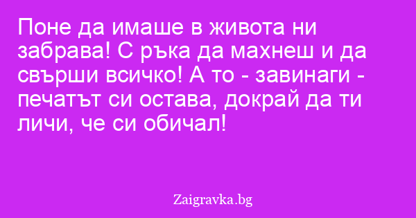 Поне да имаше в живота ни забрава! С ръка да махнеш и да свърши всичко! А то - завинаги - печатът си остава, докрай да ти личи, че си обичал!