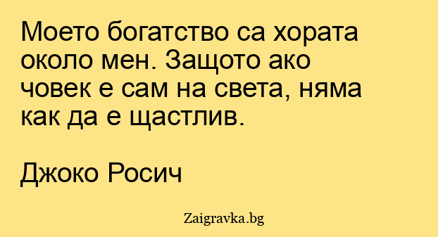 Моето богатство са хората около мен. Защото ако човек е сам на света, няма как да е щастлив.