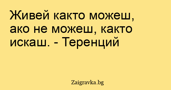Живей както можеш, ако не можеш, както искаш. - Теренций