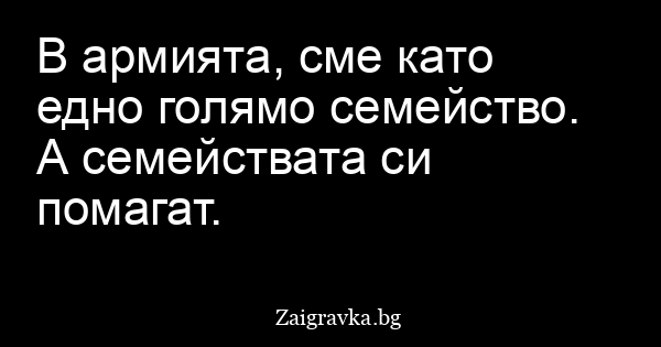В армията, сме като едно голямо семейство. А семействата си помагат.
