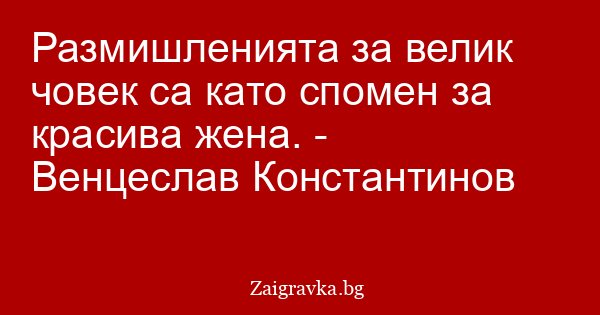Размишленията за велик човек са като спомен за красива жена. - Венцеслав Константинов