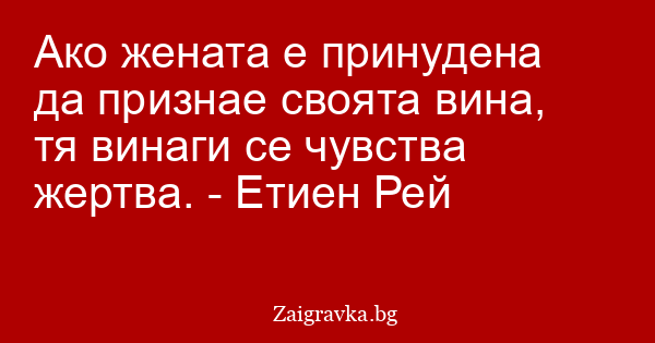 Ако жената е принудена да признае своята вина, тя винаги се чувства жертва. - Етиен Рей