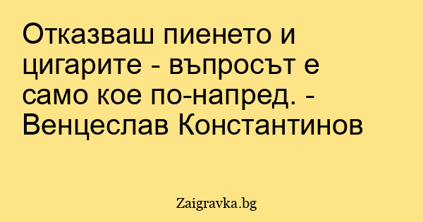 Отказваш пиенето и цигарите - въпросът е само кое по-напред. - Венцеслав Константинов