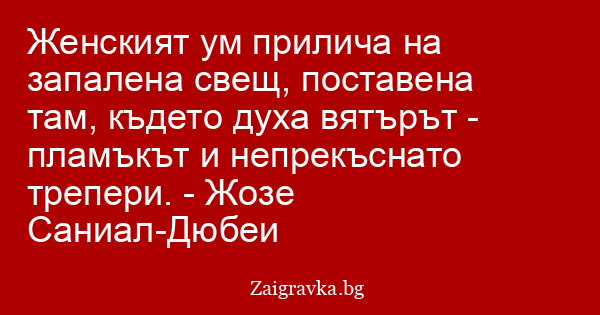 Женският ум прилича на запалена свещ, поставена там, където духа вятърът - пламъкът и непрекъснато трепери. - Жозе Саниал-Дюбеи