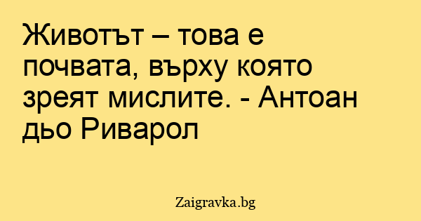 Животът – това е почвата, върху която зреят мислите. - Антоан дьо Риварол