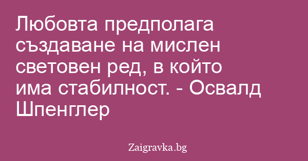 Любовта предполага създаване на мислен световен ред, в който има стабилност. - Освалд Шпенглер