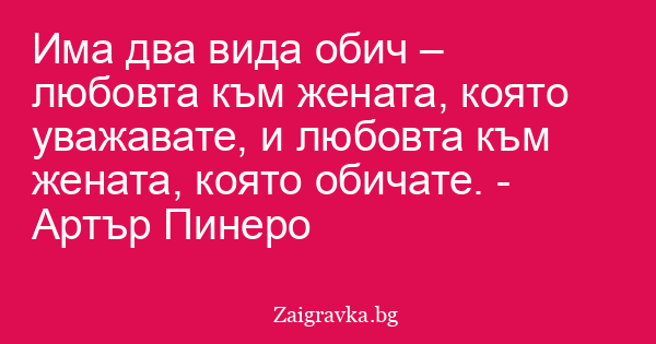Има два вида обич – любовта към жената, която уважавате, и любовта към жената, която обичате. - Артър Пинеро