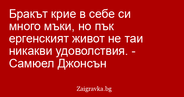 Бракът крие в себе си много мъки, но пък ергенският живот не таи никакви удоволствия. - Самюел Джонсън