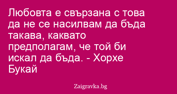 Любовта е свързана с това да не се насилвам да бъда такава, каквато предполагам, че той би искал да бъда. - Хорхе Букай