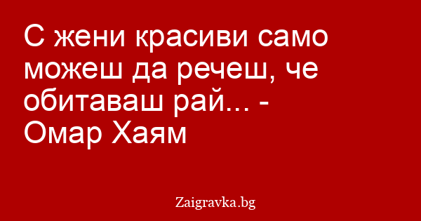 С жени красиви само можеш да речеш, че обитаваш рай... - Омар Хаям