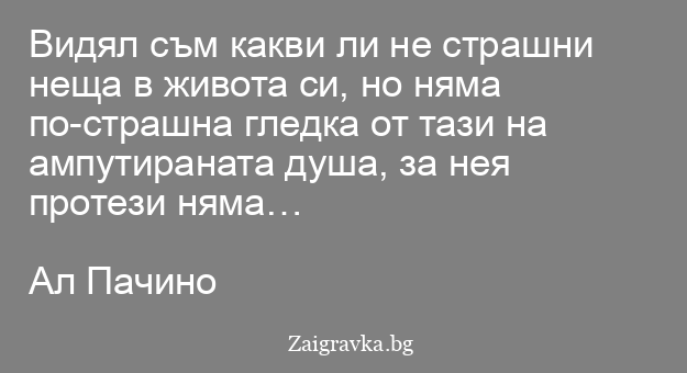 Видял съм какви ли не страшни неща в живота си, но няма по-страшна гледка от тази на ампутираната душа, за нея протези няма…