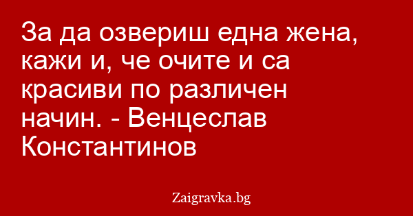 За да озвериш една жена, кажи и, че очите и са красиви по различен начин. - Венцеслав Константинов