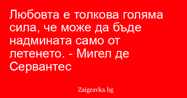 Любовта е толкова голяма сила, че може да бъде надмината само от летенето. - Мигел де Сервантес