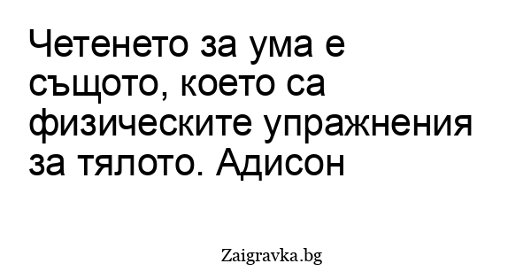 Заигравка » Цитати » Други » Четенето за ума е същото Разни мъдрости, мисли и цитати ВраговеВремеДоброДругиДушатаЖенитеЖивотаЖивотниЗлоИзточниИстинатаКрасотаЛичностЛъжатаЛюбовМечтитеМъжетеМъкаНадеждаНастроениеПариПриятелствоРаботаСватбаСвободаСексСтрахСъветСъдбаУсмивкитеУспехУтехаХораЦелувкитеЩастие Четенето за ума е същото, което са физическите упражнения за тялото. Адисон « Предишна Следваща » Подобни цитати Колкото повече изучаваш себе си, толкова по-малко презираш другите. Нодие Добавен преди 11 години Беден е не този, който има малко, а този, който иска да има повече. Сенека Добавен преди 11 години Вярвам, защото е абсурдно, ако беше достоверно щях да знам. Тома Аквински Добавен преди 11 години Само преживените неща са истински разбрани. Добавен преди 11 години Мисълта е тази, която прави нещата такива. Шекспир Добавен преди 11 години