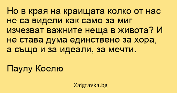 Но в края на краищата колко от нас не са видели как само за миг изчезват важните неща в живота? И не става дума единствено за хора, а също и за идеали, за мечти.