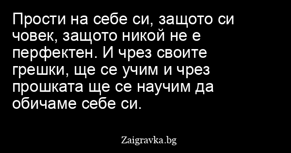 Прости на себе си, защото си човек, защото никой не е перфектен. И чрез своите грешки, ще се учим и чрез прошката ще се научим да обичаме себе си.