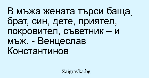 В мъжа жената търси баща, брат, син, дете, приятел, покровител, съветник – и мъж. - Венцеслав Константинов
