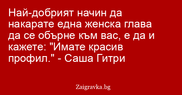 Най-добрият начин да накарате една женска глава да се обърне към вас, е да и кажете: "Имате красив профил." - Саша Гитри
