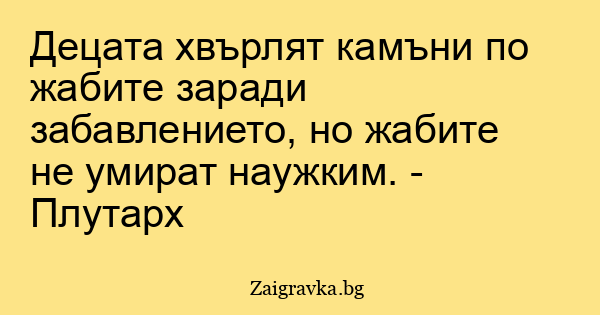 Децата хвърлят камъни по жабите заради забавлението, но жабите не умират наужким. - Плутарх