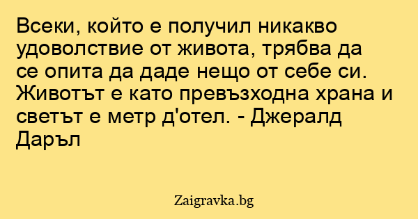 Всеки, който е получил никакво удоволствие от живота, трябва да се опита да даде нещо от себе си. Животът е като превъзходна храна и светът е метр д'отел. - Джералд Даръл