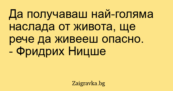 Да получаваш най-голяма наслада от живота, ще рече да живееш опасно. - Фридрих Ницше