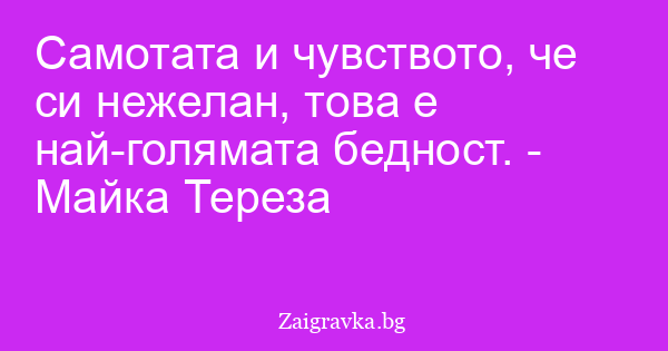 Самотата и чувството, че си нежелан, това е най-голямата бедност. - Майка Тереза