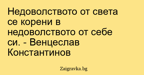 Недоволството от света се корени в недоволството от себе си. - Венцеслав Константинов
