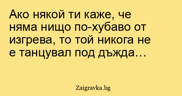 Ако някой ти каже, че няма нищо по-хубаво от изгрева, то той никога не е танцувал под дъжда…