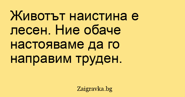 Животът наистина е лесен. Ние обаче настояваме да го направим труден.