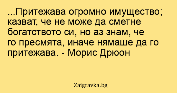 ...Притежава огромно имущество; казват, че не може да сметне богатството си, но аз знам, че го пресмята, иначе нямаше да го притежава. - Морис Дрюон