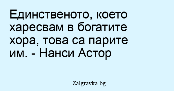 Единственото, което харесвам в богатите хора, това са парите им. - Нанси Астор