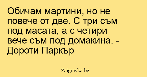 Обичам мартини, но не повече от две. С три съм под масата, а с четири вече съм под домакина. - Дороти Паркър