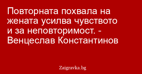 Повторната похвала на жената усилва чувството и за неповторимост. - Венцеслав Константинов