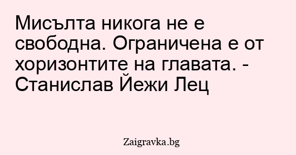 Мисълта никога не е свободна. Ограничена е от хоризонтите на главата. - Станислав Йежи Лец