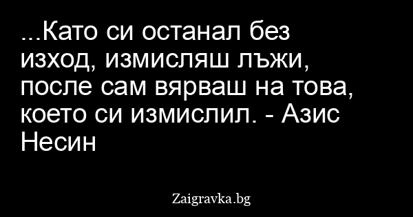 ...Като си останал без изход, измисляш лъжи, после сам вярваш на това, което си измислил. - Азис Несин