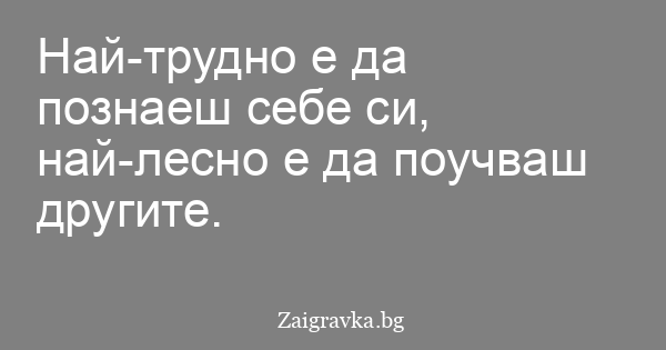 Най-трудно е да познаеш себе си, най-лесно е да поучваш другите.