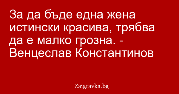 За да бъде една жена истински красива, трябва да е малко грозна. - Венцеслав Константинов