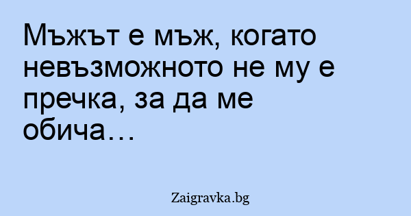 Мъжът е мъж, когато невъзможното не му е пречка, за да ме обича…
