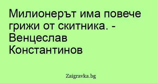 Милионерът има повече грижи от скитника. - Венцеслав Константинов