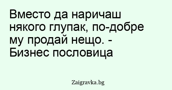 Вместо да наричаш някого глупак, по-добре му продай нещо. - Бизнес пословица