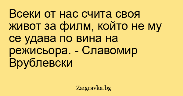 Всеки от нас счита своя живот за филм, който не му се удава по вина на режисьора. - Славомир Врублевски